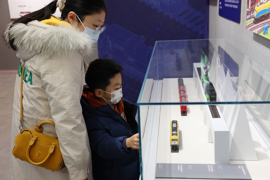 “最值得一提的还有‘伟人号’荣誉机车。”朱海杰说。现场展出了共8列“毛泽东号”“周恩来号”“朱德号”机车模型,以1:160比例制作。1946年解放战争时期,哈尔滨机务段工人修复304号蒸汽机车,经批准命名为“毛泽东号”,1949年划归北京丰台机务段,此后历经蒸汽、内燃、电力三种动力方式,先后更替五种车型,被誉为“火车头中的火车头”。1977年,全国铁路职工为缅怀周总理,请愿为其命名机车。曾牵引周总理专列的上海机务段东风3-0058号机车获批准,命名为“周恩来号”。展览还用三张插画故事浓缩了中国铁路技术演进史。从东风11型内燃机车牵引的25G空调客车车厢到CRH2A型“和谐号”动车组车厢,再到CR400AF“复兴号”动车组车厢。中国高铁技术实现了从“引进消化”到“全面自主”的飞跃。“这些模型的加工精度可以达到0.01毫米,通过很小的模型,可以表达很有意义的内容。”朱海杰说,“希望通过展览,不仅让观众看到火车的发展史,也能了解中国铁路的优良传统与传承。”