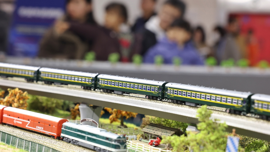 绿皮火车从隧道里穿梭而出,沿着长长的铁轨驶向远处,一旁的小小火车迷看得目不转睛。12月27日,作为第19届上海新年模型交流赛的特别呈现,《星球铁道狂想曲》火车模型主题展亮相市群艺馆,50多款火车模型与十大主题场景将人带入一个铁路微缩世界。这也是上海新年模型交流赛首次举办火车模型展。